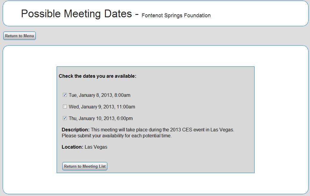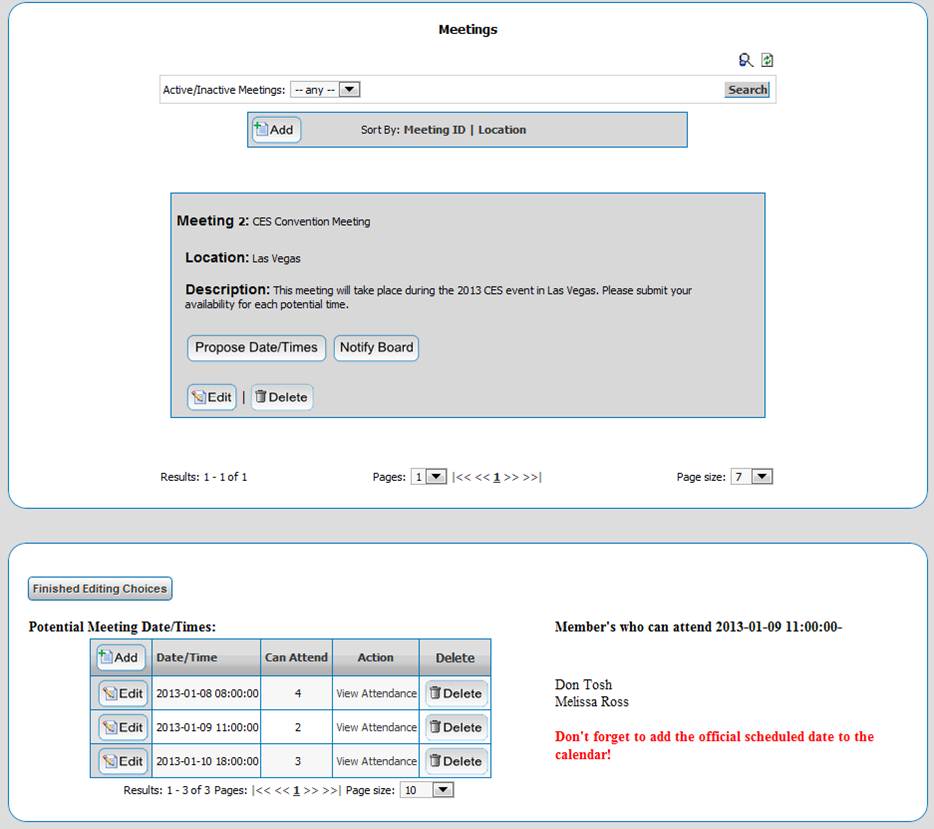 Scheduling meetings with your board can be a real hassle with busy schedules and limited availability. This feature will enable your board to stay on track by making it easy for members to indicate their availability for multiple proposed dates and times.