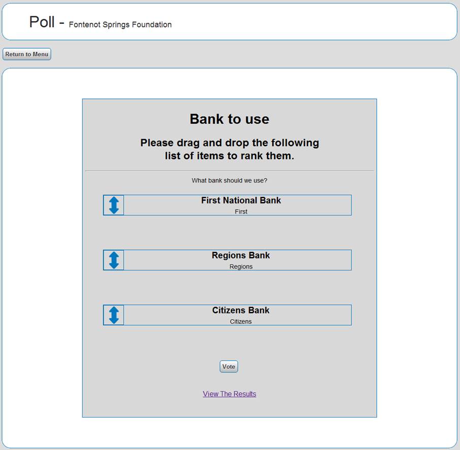 BoardGPS makes it easy to vote on motions and also to conduct online polls to rank/sort issues before the board. Members can participate in voting and polls from any location with a web browser and our secure Internet connection. The hassle and responsibility of collecting, tracking, and compiling results submitted via countless email messages is eliminated with this board productivity feature. Plus, our polling system offers a powerful "visual sorting" feature to make it easy for individual board members to sort and rank issues with a click of their mouse before submitting their rankings for analysis!